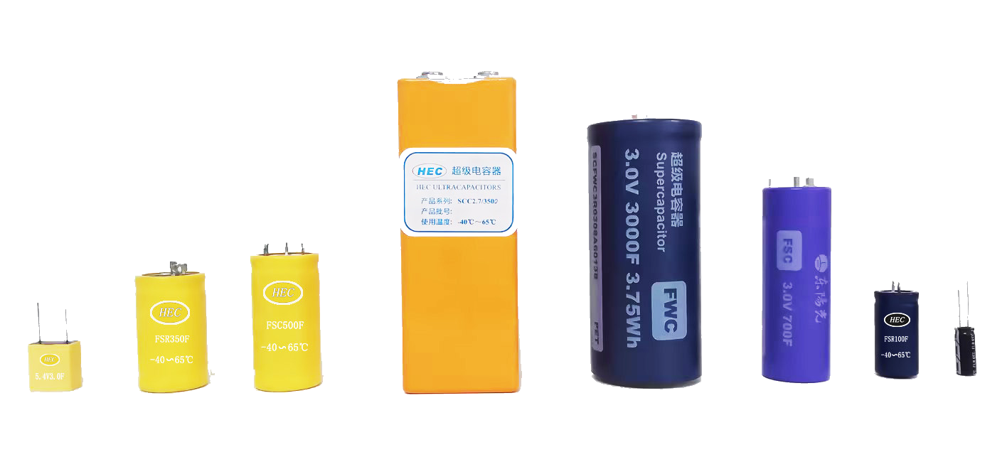 超级电容器 0-2.7V/3.0V/3.2V 1F-4000F -40℃-65℃ >2000h